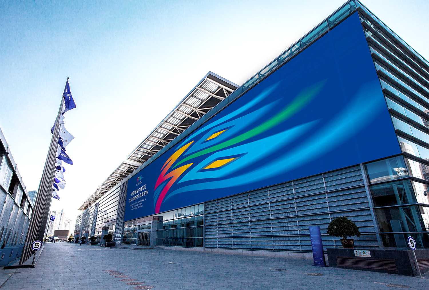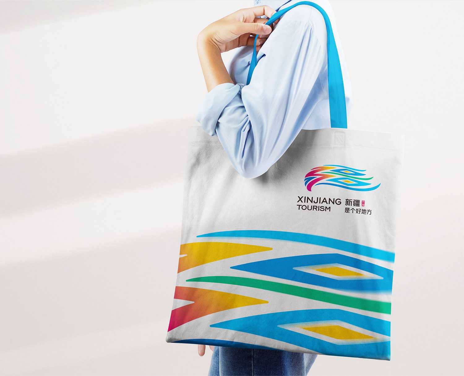 靈動飄逸的圖形的下方標(biāo)有中英文雙語的口號「新疆是個(gè)好地方(XINJIANG TOURISM)」,進(jìn)一步彰顯了新疆旅游的國際化視野與現(xiàn)代發(fā)展理念。「新疆」的右側(cè)綴以篆書印章的形式表達(dá)傳承與創(chuàng)新。